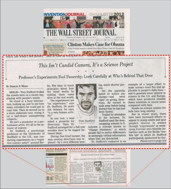 The ‘Cognitive Science Safari’ I did in Berlin for the BMW Guggenheim lab got onto the cover of the Wall Street Journal – see it large here (I’m at the bottom). On the website there’s a video of what we got up to.