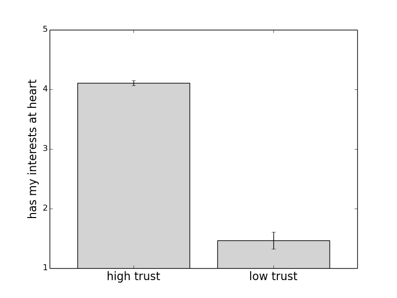 Again, the same relationship between variables held. Trust in friends and family was driven more by a perception of shared interests than it was by perceptions of expertise. Remember, this isn’t a measure of generalised trust, but specifically of trust in their communications about pollution risks.