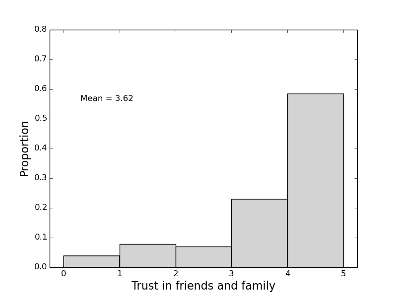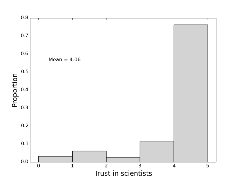 One group we asked about the perception of was scientists. The householders answered on a scale which went from 1 to 5 (5 is the most trust). Here’s the distribution of answers: